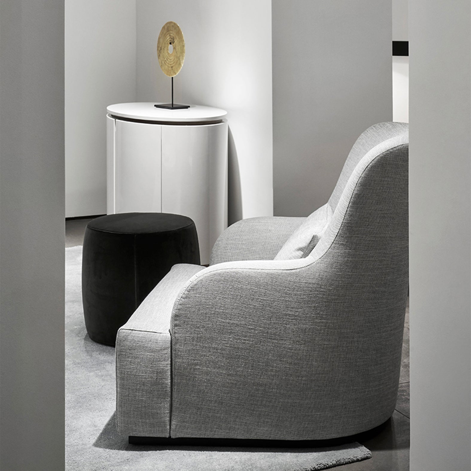 Soft and essential lines are the most important features of this lounge chair, reinterpretation of the classic bergère which, thanks to the high backrest, represents the perfect solution for relaxing. Liu is available both with loose cover and in the version Skin, with tight cover which leaves the base at sight. A special version, showing a gentle elegance, is the Liu Kuoio which offers to sight and touch the pleasure of an outer shell in saddle leather, emphasized by the precious detail of saddlery stitching.