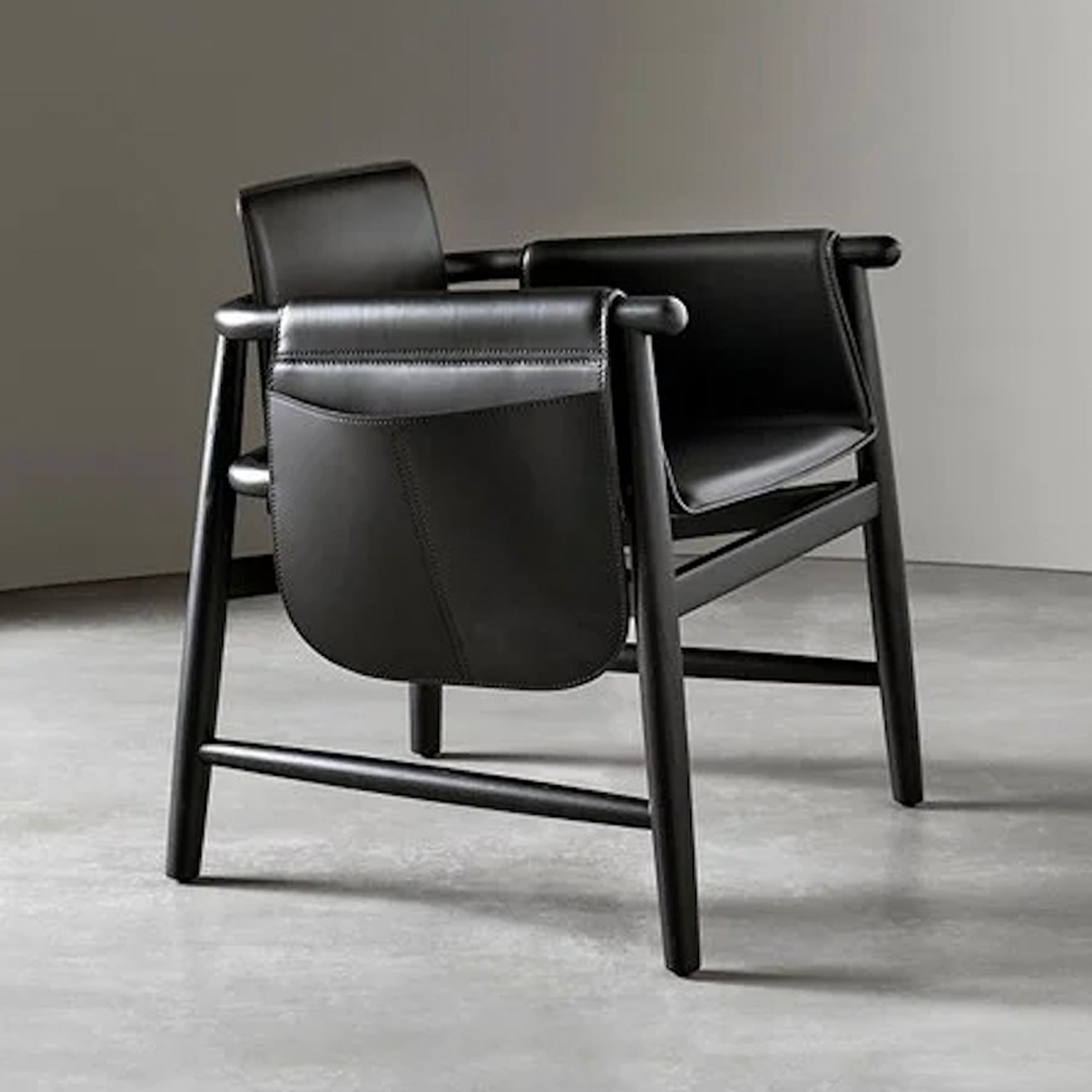 Two souls enclosed in the same body: Teresina is a chair and a lounge small armchair marked by essential lines that take shape and structure thanks to the warmth and solidity of oak wood, skillfully crafted. Both comfort and aesthetics differ in the available versions, the “soft” one, more welcoming, with padded back and seat covered with the textiles and leathers in collection, and the “kuoio” one. The latter takes on a more gritty and decided look thanks to a saddle-leather body that defines back, armrests and seat: the particular saddle leather shape bound up to the oak frame draws a suspended seat that emphasizes its rigor. It is available a storage bag as an accessory, to be placed left or right, or even on both sides at your choice. This is how this collection recalls different suggestions depending on the finish and color chosen, creating versatile seats able to dress up and interpret every living context.