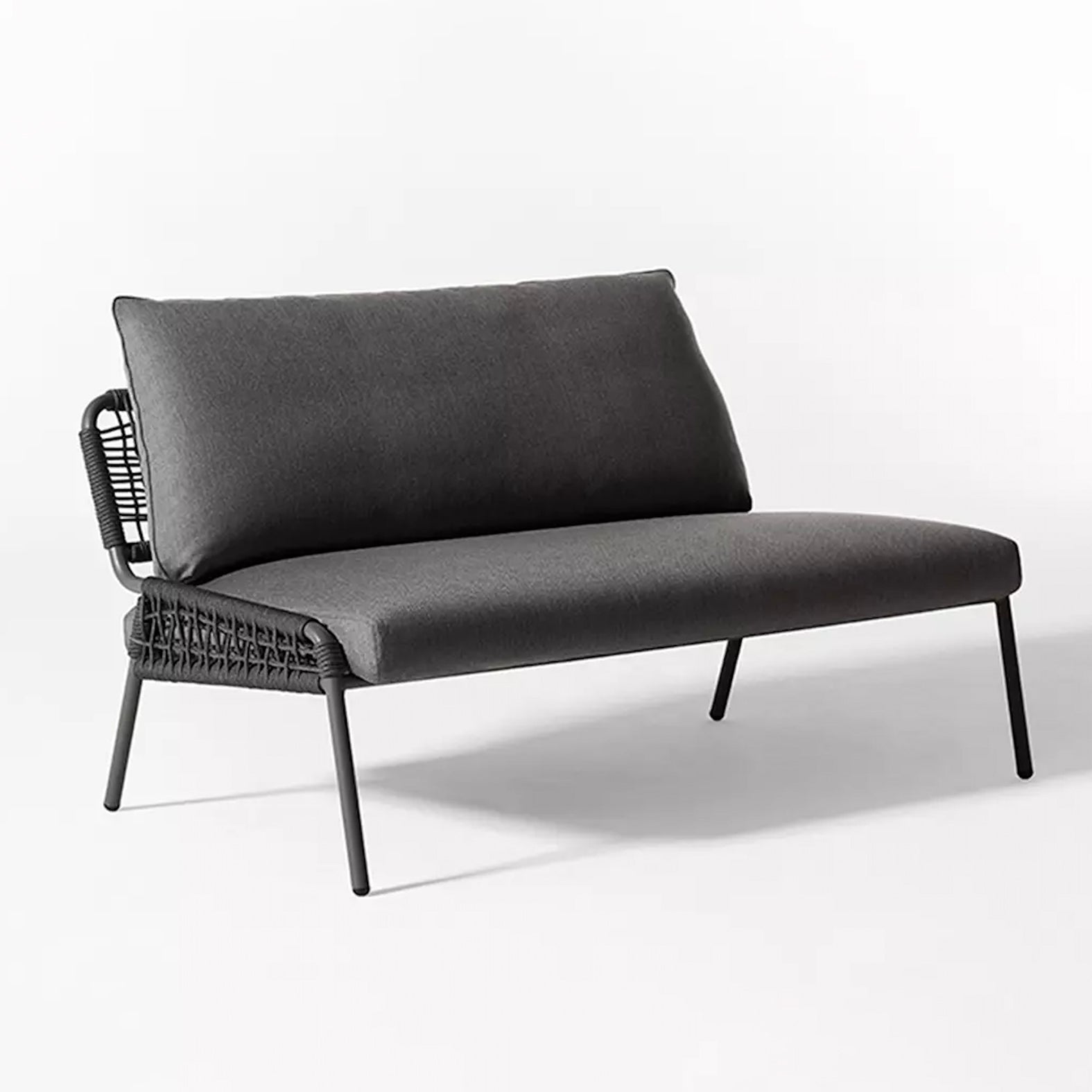 Zoe Open Air is a collection of armchairs and small sofa featured by the skilful combination of outdoor materials. The protagonist is a polypropylene rope, inspired by mooring ropes for boating, and supported by a painted aluminium frame: the four available colours - Chalk, Petrol, Elephant and Black – make it sophisticated in its simplicity. Zoe Open Air has a padded seat and a precious hand-made weave, available in two versions, for the backrest.